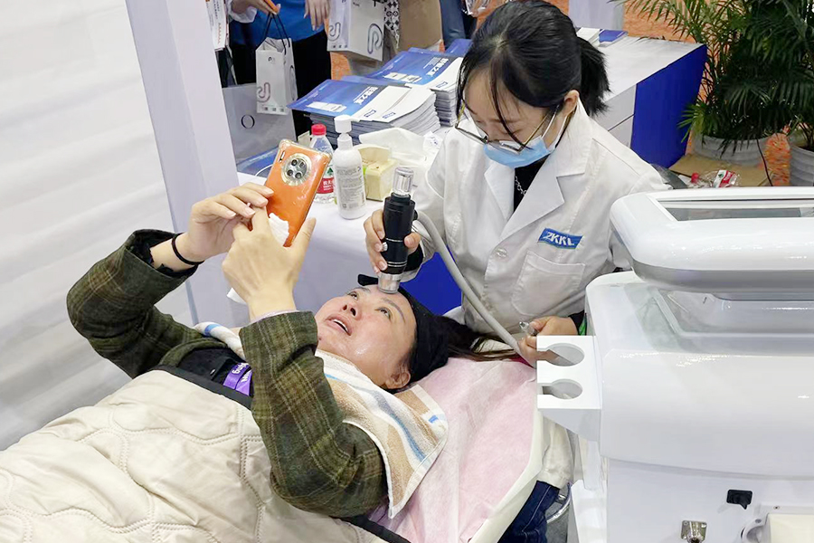 展會(huì)現(xiàn)場(chǎng)體驗(yàn)中科科理明星產(chǎn)品的人絡(luò)繹不絕,多位專家教授在體驗(yàn)完中科科理狂塑之星以后,表示全程舒適度高,無痛,面部蘋果肌明顯提升,下頜緣線條變清晰,魚尾紋法令紋都有明顯改善,認(rèn)為狂塑之星是一款很不錯(cuò)的抗衰塑形利器。